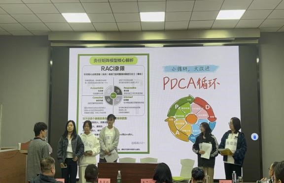 19日下午,实训迎来高潮——“管理角色体验与表演+颁奖仪式”环节。企业管理党支部书记岳婷、系主任牟宇鹏、副主任刘满芝、吕雪晴、刘蓓、宣传委员李宗波、教师许红华、程秀芳、于海淼坐镇指导,同学们以“我身边的管理问题”为蓝本,将身边的职场见闻与专业知识相融合,以喜剧诙谐的风格,深刻挖掘管理问题本质,用富有亮点的台词与投入流畅的表演,呈现对管理场景的艺术化思考。从“部门协作中的沟通壁垒”到“小组管理的温情与严谨”,一个个不同的剧目既折射出专业认知的深度,更暗含党建思想中“发现问题、解决问题”的实践逻辑。表演结束后,进行了激动人心的颁奖环节,系里对优秀小组与个人进行表彰并授予证书,鼓励同学们以党建精神为引领,在EPCAA体系支撑下持续成长。
