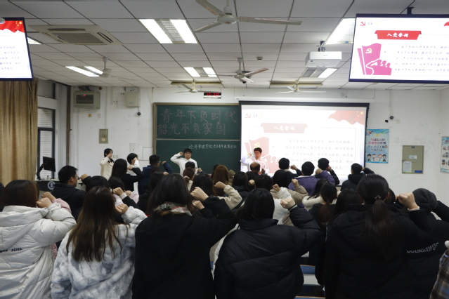 随后,本科生2021级党支部张钦鋆同志表示青年要吸足理论墨水,以全面系统学、及时跟进学、深入思考学,联系实际学的学习方式武装理论头脑;第二,要发扬实干精神,保持党真抓实干的光荣传统;第三,要做到投身群众,树立服务源于真诚、真心胜于承诺的服务意识。