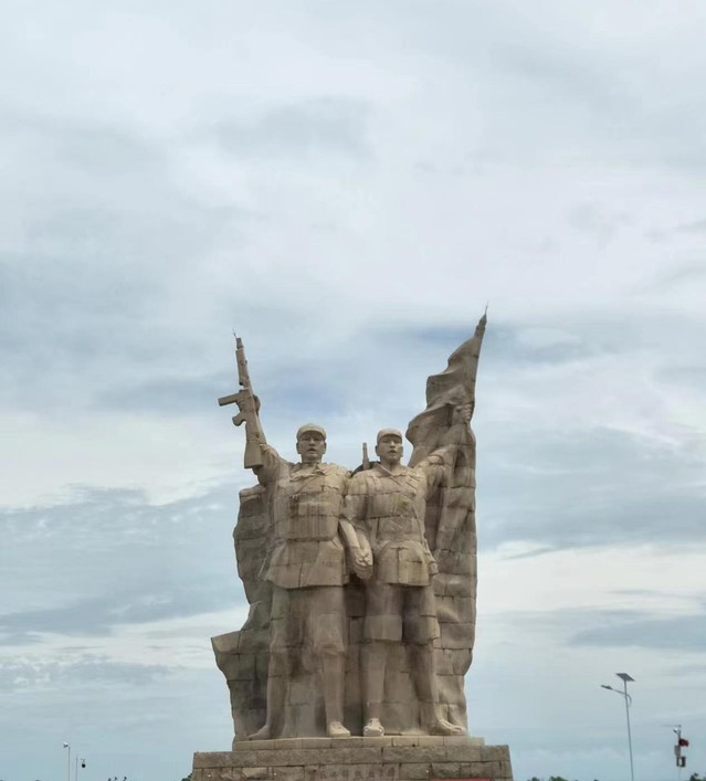 海南解放展览馆内陈列着一件件珍贵的历史实物,它们仿佛是时光的见证,将那段英雄历程永远地定格。一架老旧的步枪,显现出当年战士们的坚毅与顽强;一张疏密有致的战地地图,真实地描绘了解放军英勇的军事行动;一尊威严庄重的雕塑,彰显着中国人民解放军的荣耀与威严。这些实物不仅展示了解放海南岛的历史,更让参观者们深刻地感受到了英雄们的牺牲与付出,使实践团成员更加珍惜如今来之不易的和平社会。