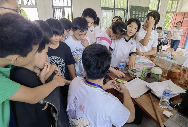 支教团为每个年级的孩子都安排了两位班主任,陪伴孩子们从早读至午休到放学。教室里和办公室里处处都洋溢着欢声笑语,老师和孩子们相处得十分融洽,支教工作也开展得井然有序。其中祁家遥同学负责语文科目的教学,为了了解同学们的学习水平,祁家遥同学和支教团的队友们组织了一场语文学科摸底考试,改卷时间长达6个小时。虽然很辛苦,但他们甘之如饴。之后他对于成绩不太理想的同学做了针对性的辅导。同时通过考试,他发现了孩子们上课不爱做笔记的习惯,于是特地开设了一节学习方法的讲述课程,给同学们着重强调了课堂笔记的重要性以提高他们的课堂效率,而且有利于孩子们课后总结复习,从而取得更好的语文成绩。