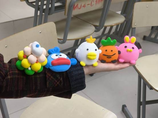 活动伊始,团支书董学文将同学们分为四个小组,为大家分发了制作材料,并详细介绍了超轻黏土的特性与基本制作技巧。精美的黏土作品案例,迅速点燃了同学们的创作灵感。在随后的自由创作环节,教室气氛热烈融洽。同学们或参照教程认真钻研,或天马行空自由发挥,全神贯注地揉捏、塑形,赋予手中彩泥以鲜活的生命。经过一个多小时的精心制作,一件件色彩斑斓、形态各异的作品诞生了:憨态可掬的小白兔、张牙舞爪的彩色螃蟹、充满童趣的小鸡与花朵……这些作品不仅是动手能力的体现,更是同学们独特审美与无限巧思的凝聚。