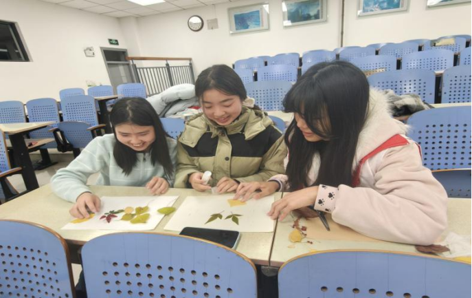 为了鼓励同学们践行绿色的环保理念,12月2日,经济管理学院工商管理25-5班在博学3号楼B203教室开展了“落叶为诗 贴叶为歌”的志愿活动,全班共26人参加。