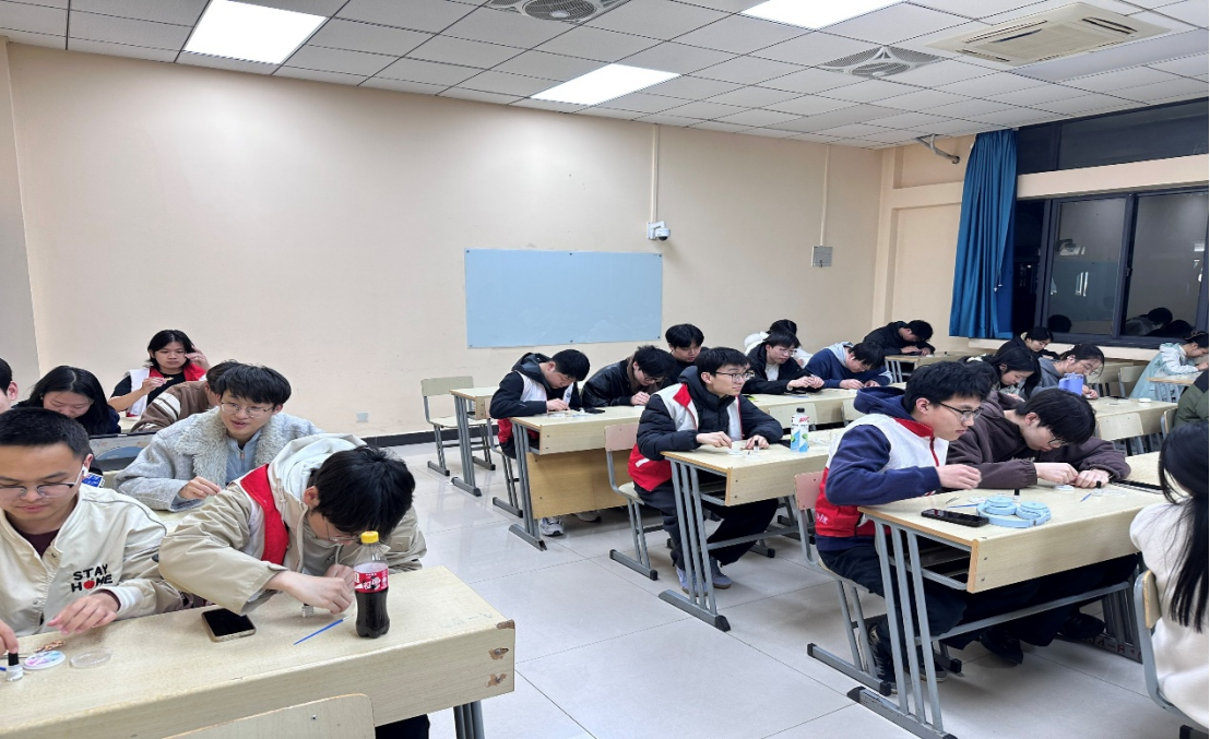 为弘扬中华优秀传统文化,传承非遗技艺,践行志愿精神,3月22日晚,大数据管理与应用23-2班、大数据管理与应用23-1班在博四楼B103联合开展了一场别开生面的“指尖琢钿承非遗,匠心凝翠饰芳华”螺钿胸针DIY志愿活动。本次活动由中国矿业大学张广石青年志愿者服务队主办,大数据管理与应用23-2班、大数据管理与应用23-1班同学参与。