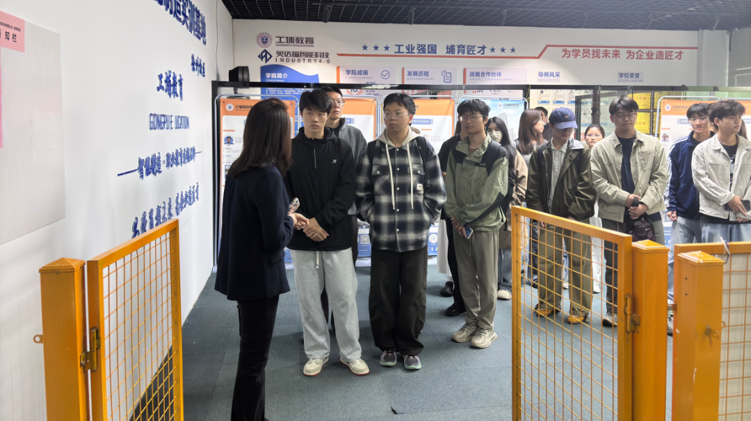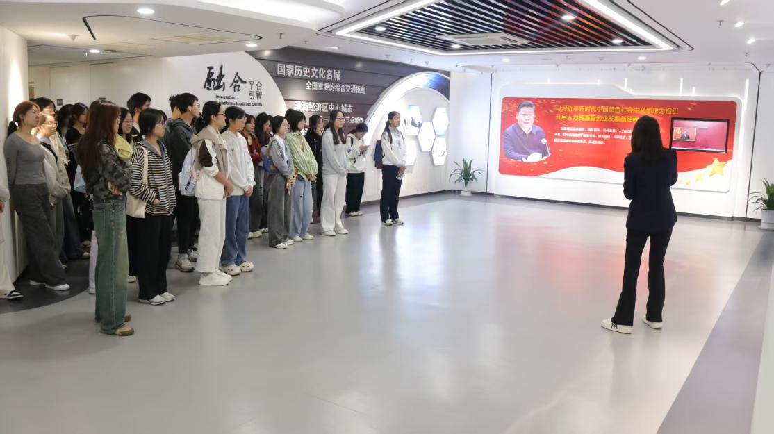 在园区裙楼参观环节,师生先后走进智能制造实训基地、行政审批中心与淮海零工市场,刘吟雪主任引导大家思考“技术创新与红色初心”的内在关联,让智能算法提升效率的实践场景成为感悟党建引领行业高质量发展的生动课堂。