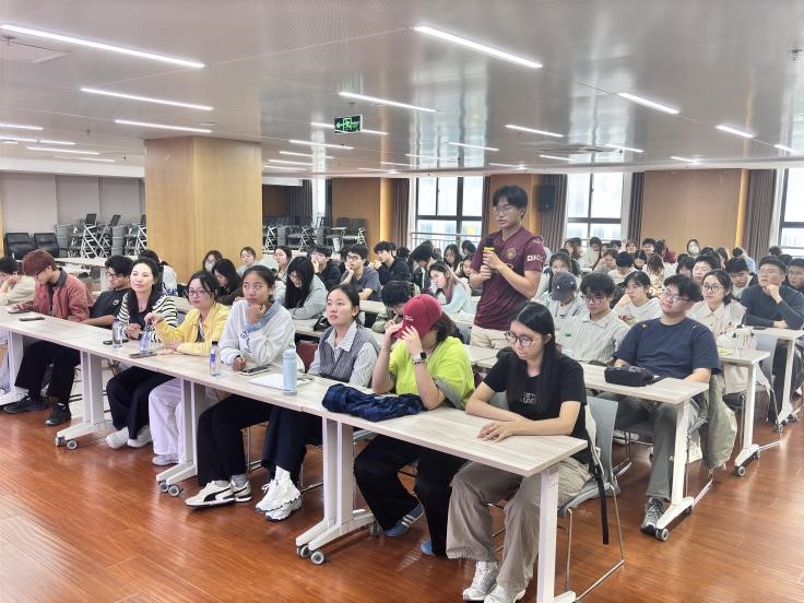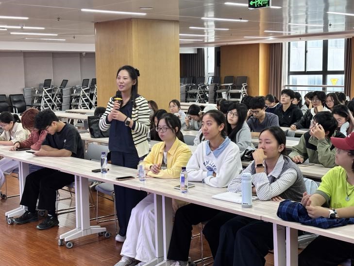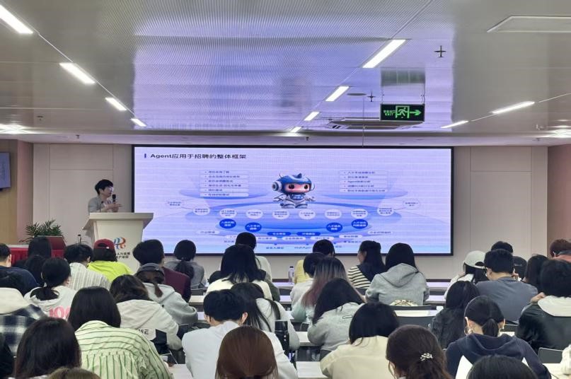 参观结束后,淮海人才集团副总经理李勤奋为师生们带来“人力资源管理大数据与智能决策移动课堂:‘淮小才’AI智能招聘平台应用与实践”的课程讲授。她指出,“淮小才”AI 智能招聘平台的研发与应用不仅是“科技赋能实体经济”号召的具体实践,也是人力资源管理与人工智能深度融合的直接体现。课后,师生围绕“AI 技术如何更好服务人力资源管理”展开热烈研讨,进一步强化了“党建引领技术创新、技术服务企业需求”的认知。