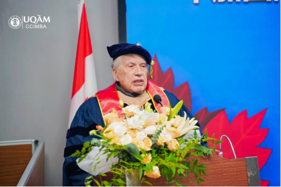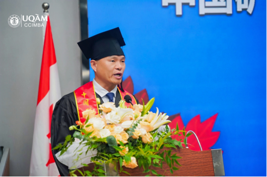 加拿大魁北克大学EMBA项目主任Kamal Bouzinab教授随后发言,他首先向那士荣教授及所有为中加国际MBA项目辛勤付出的师生与工作人员致以诚挚感谢。他强调,历经25年发展,中加国际MBA项目已成为中加教育合作的典范,希望两国友谊源远流长。他寄语毕业生作为扎根本土的全球领导者,愿你们以同理心驱动创新,以洞察力引领变革,在多极化世界中开辟新路径,让中加教育合作的火种照亮更多人的成长征程。”