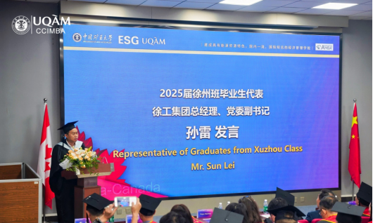 毕业生代表、中国煤炭工业协会煤炭工业职业技能鉴定指导中心高技能人才处处长张孝南,以及徐工集团工程机械股份有限公司总经理孙雷先后发言。他们深情回顾了在中加国际MBA项目的学习历程,衷心感谢母校和项目为学员们搭建的高水平、国际化深造平台,使大家在理念、视野与实践能力上都得到了全面提升。两位毕业生代表表示,将把在项目中所收获的知识与智慧应用到今后的工作与管理实践中,持续为行业创新与高质量发展贡献力量,不负“中西智慧、全球视野”的培养初心,以实际行动回馈母校的培养与中加合作的信任。