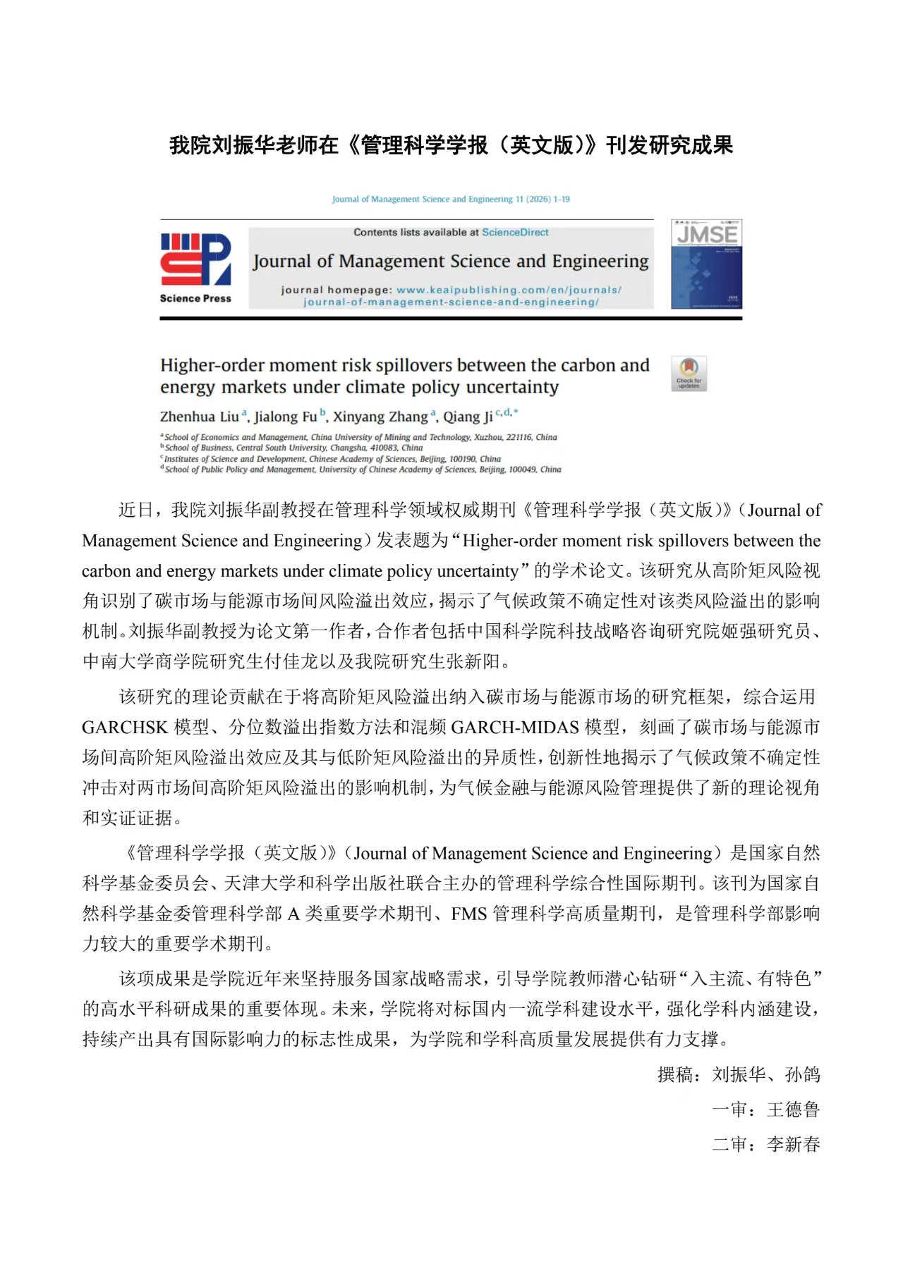 我院刘振华老师在《管理科学学报(英文版)》刊发研究成果