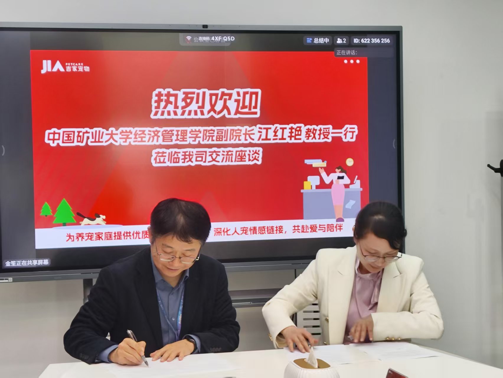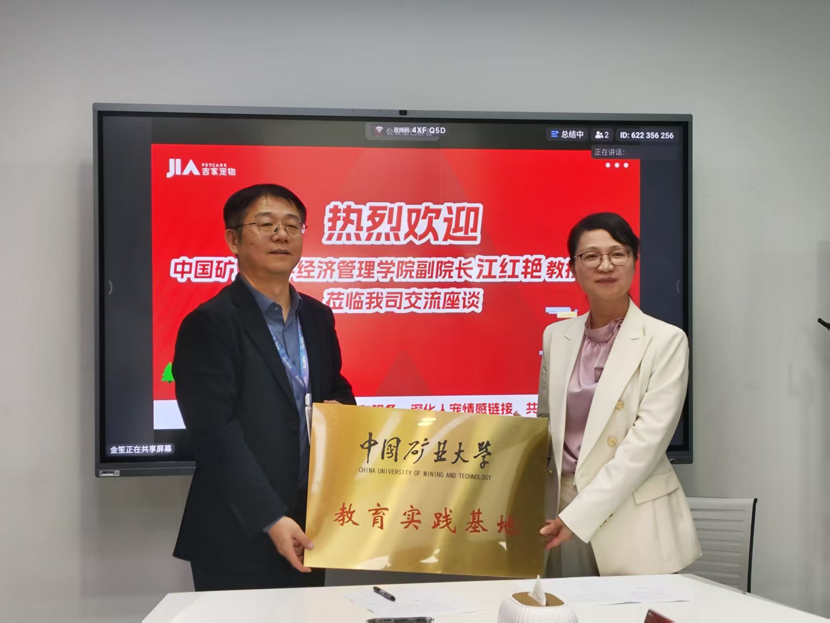 调研会上,双方围绕课程合作、实习基地建设等具体内容进行了深入探讨并达成共识,签署了中国矿业大学经济管理学院校外实习基地合作协议,授牌吉家为中国矿业大学教育实践基地。