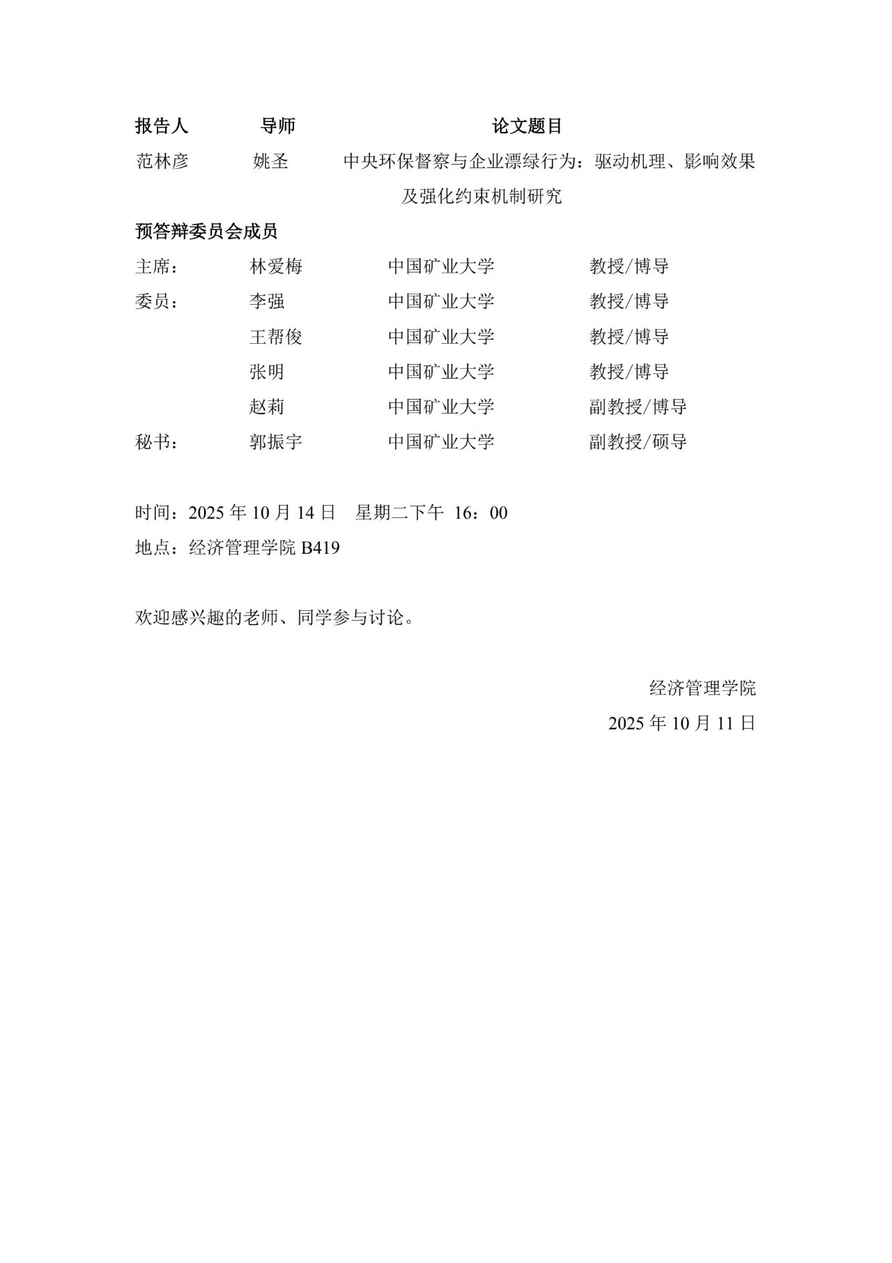 2025年下半年财务管理系统工程专业博士学位论文预答辩通告(一)