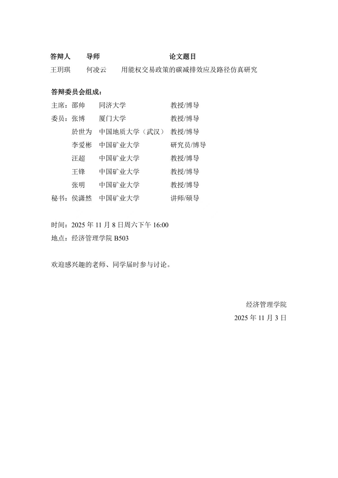 2025年下半年能源资源管理专业博士学位论文答辩通告(一)