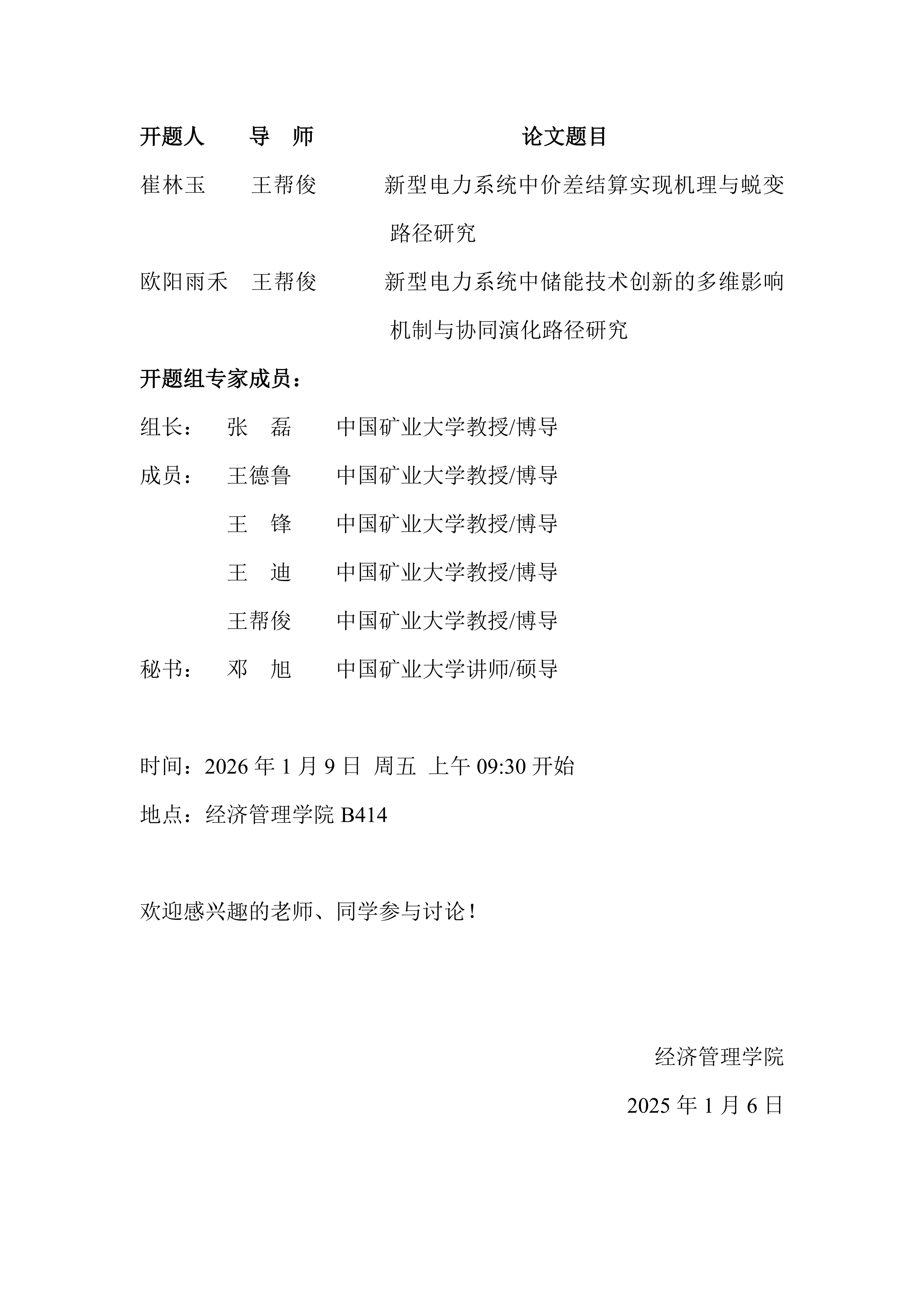 管理科学与工程专业博士学位论文开题报告会通告