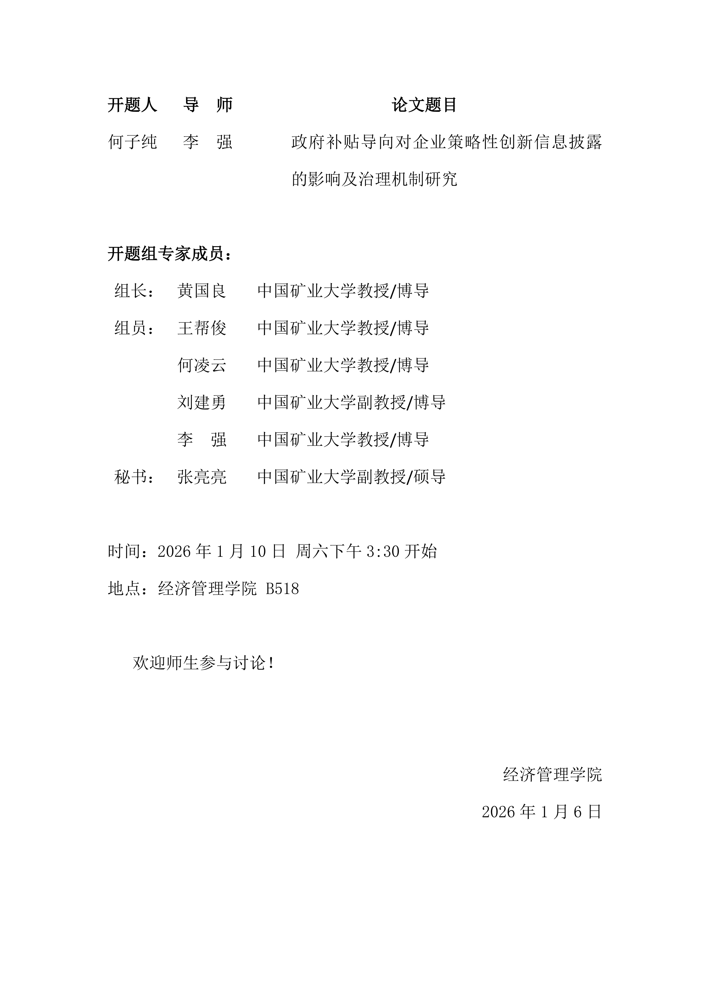 财务管理系统工程专业博士学位论文开题报告会通告