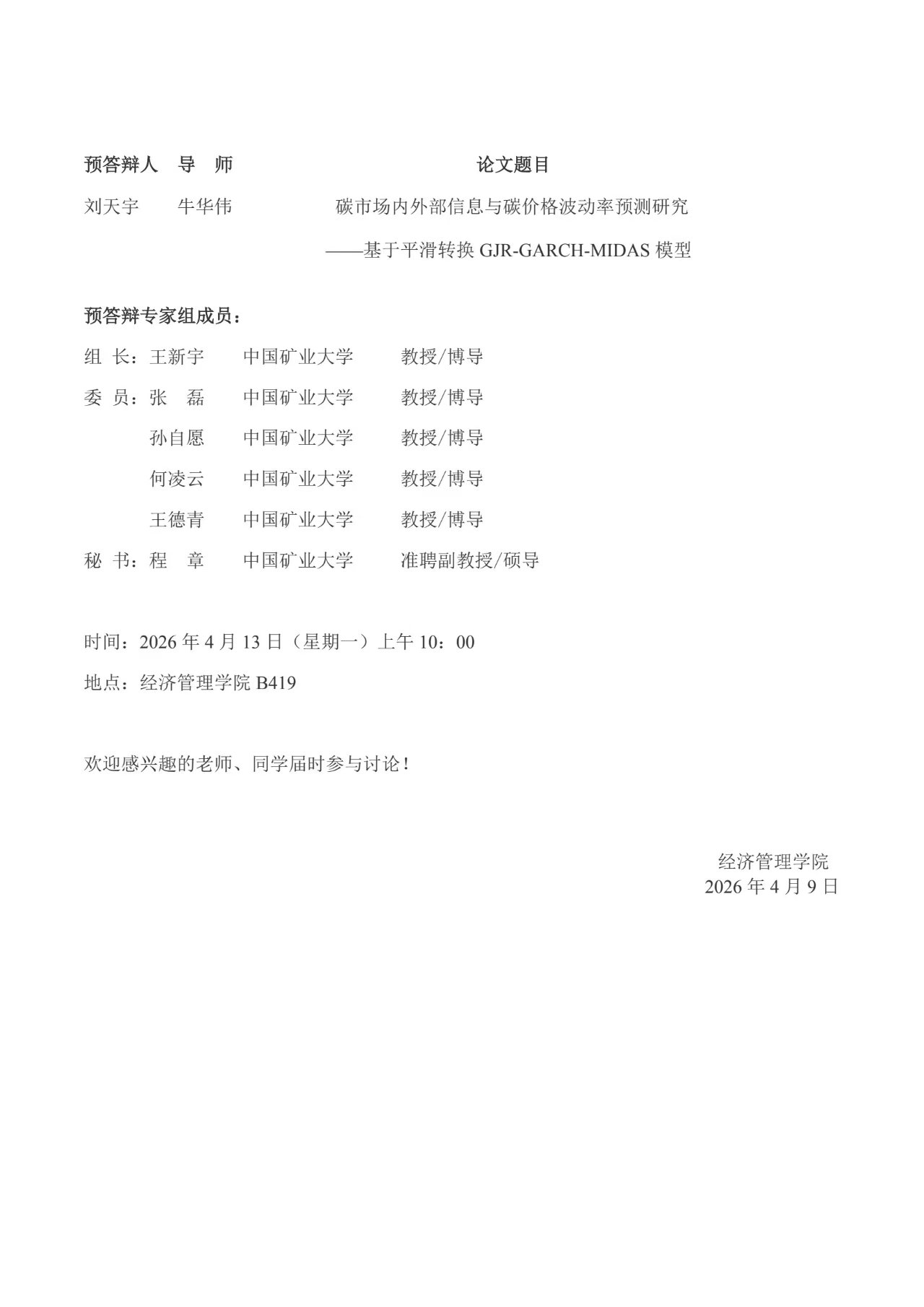 2026年上半年金融工程与风险管理专业博士学位论文预答辩通告(三)