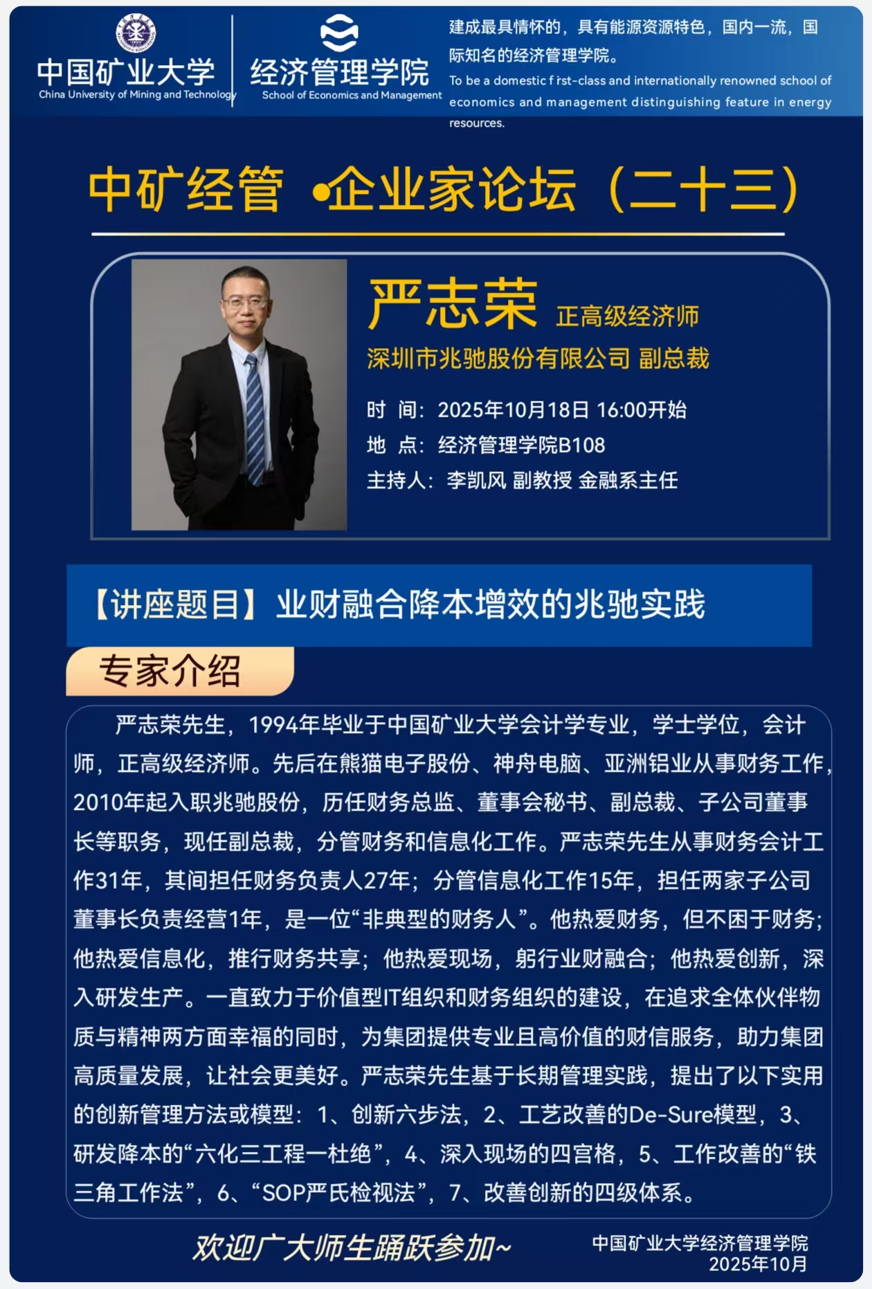 10月18日 中矿经管.企业家论坛(二十三)业财融合降本增效的兆驰实践
