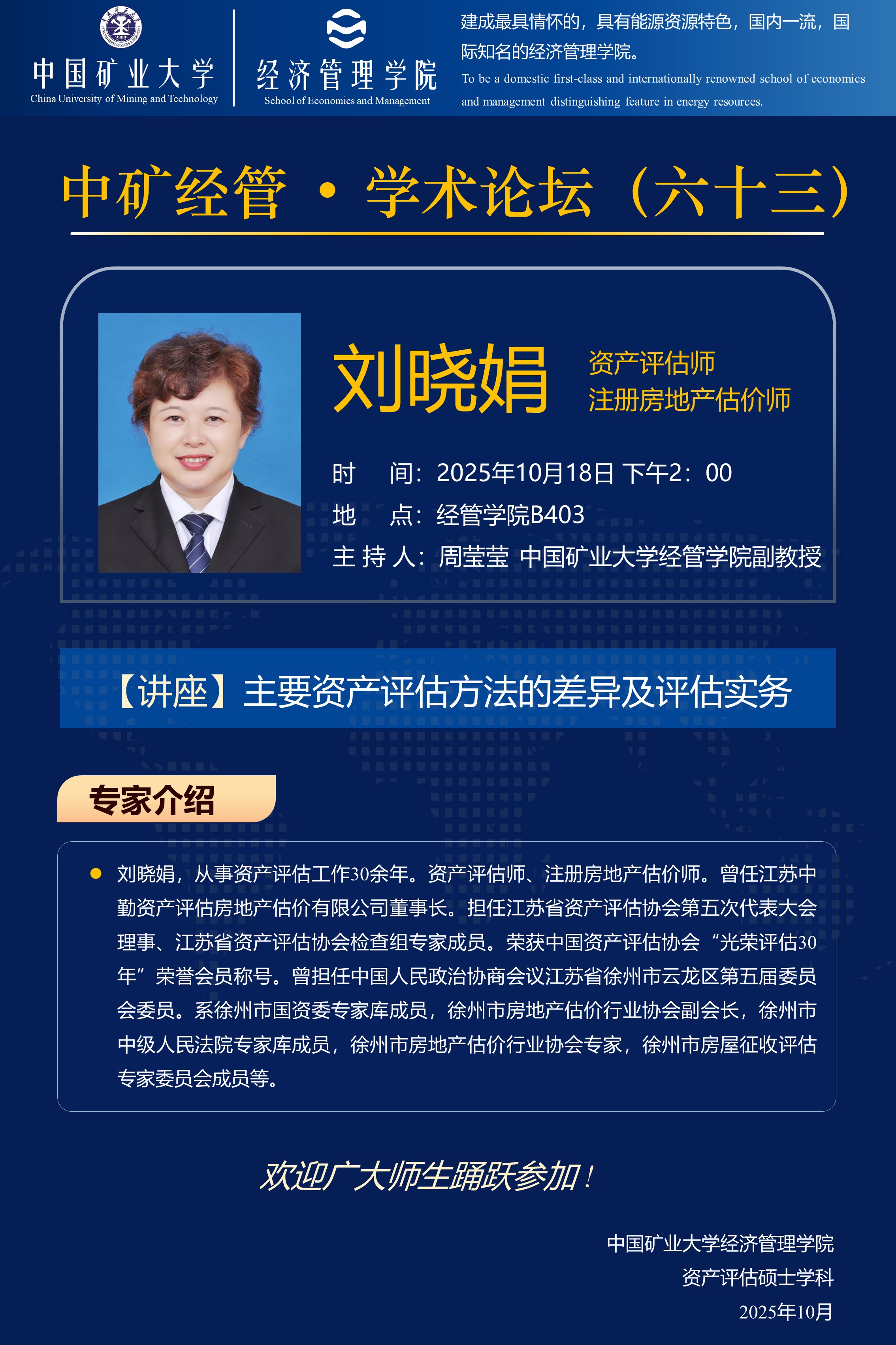 10月18日 中矿经管·学术论坛(六十三):主要资产评估方法的差异及评估实务