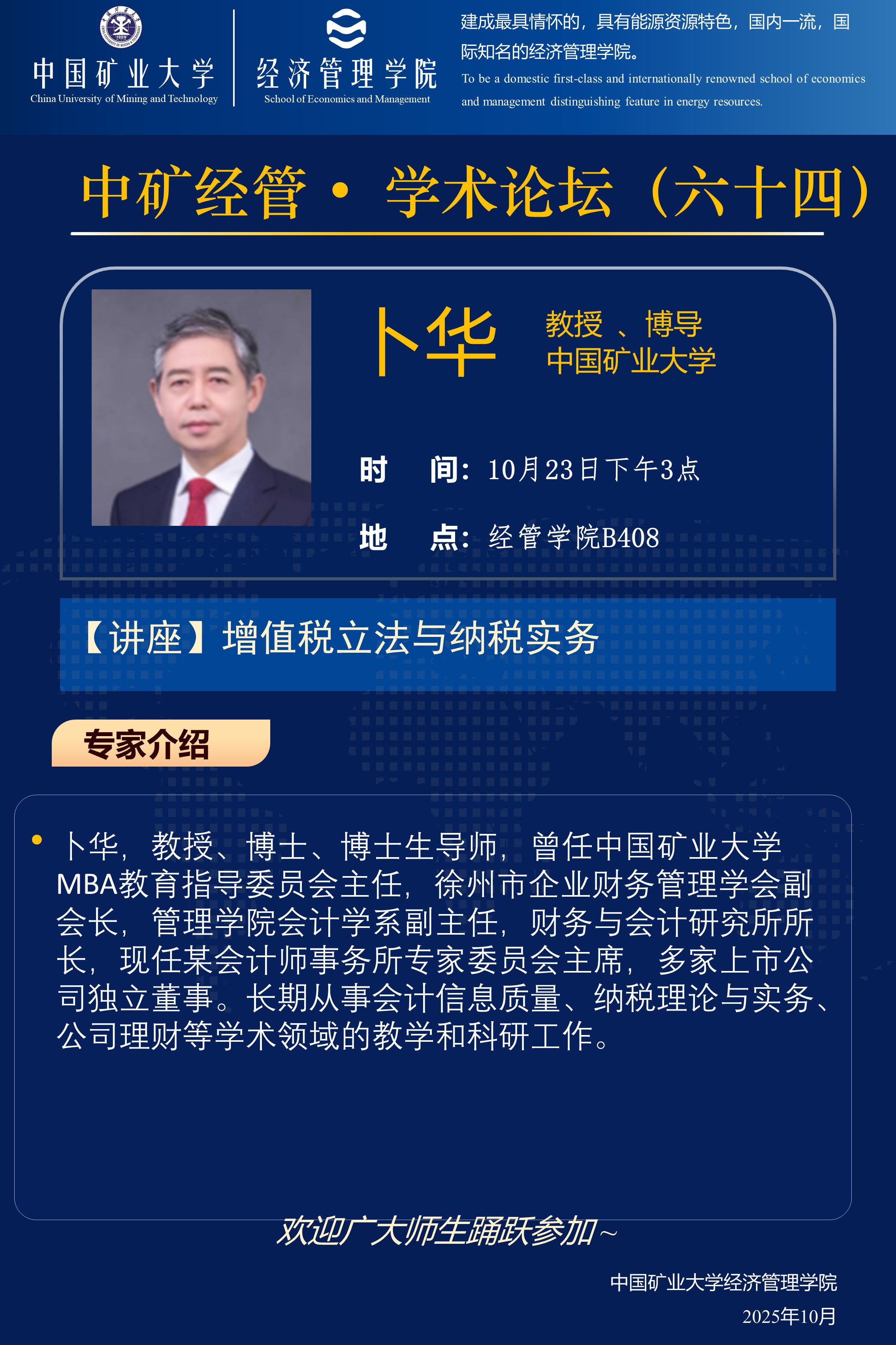 10月23日 中矿经管·学术论坛(六十四):增值税立法与纳税实务