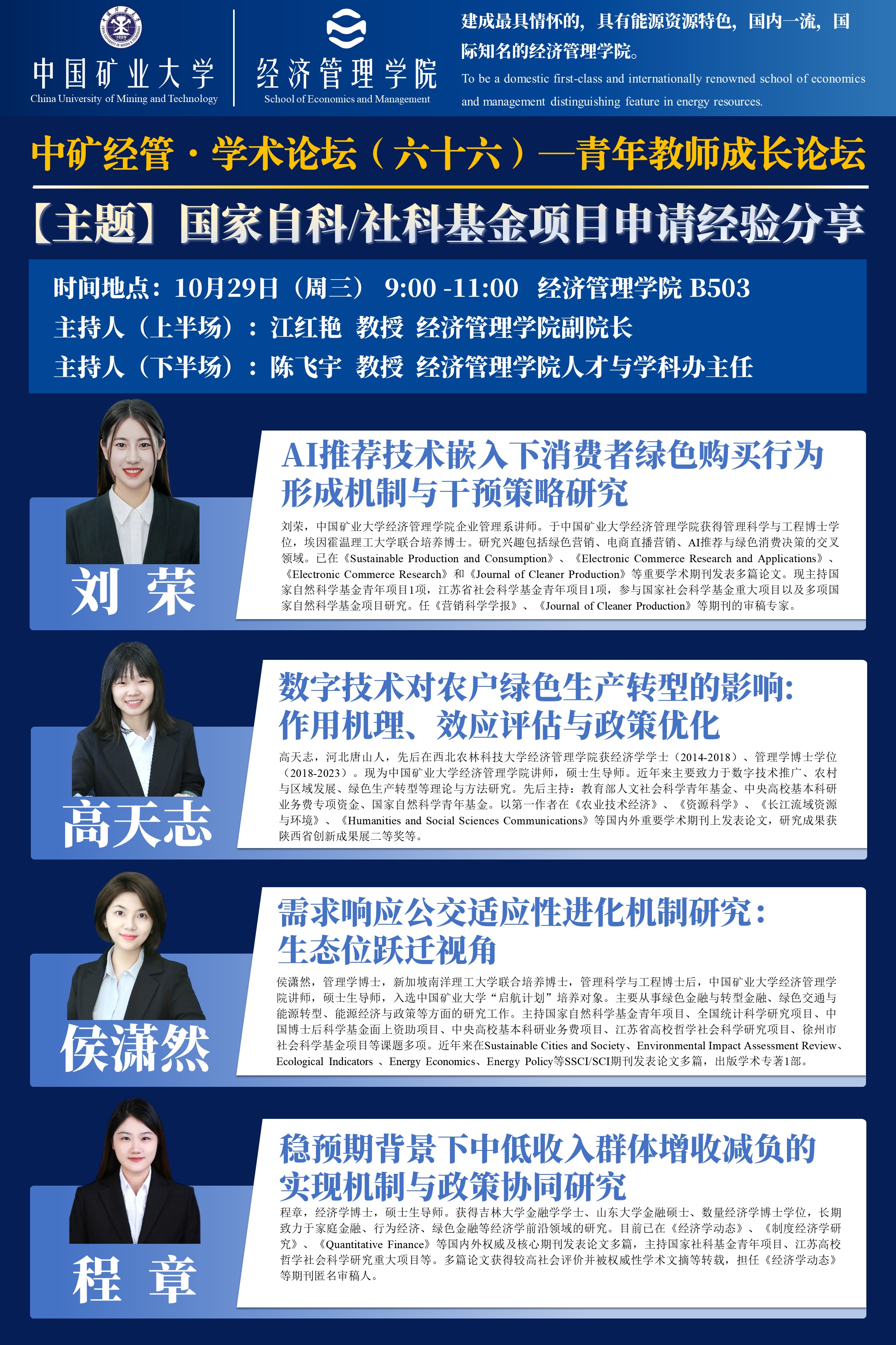 10月29日 中矿经管·学术论坛(六十六)青年教师成长论坛-国家自科/社科基金项目申请经验分享