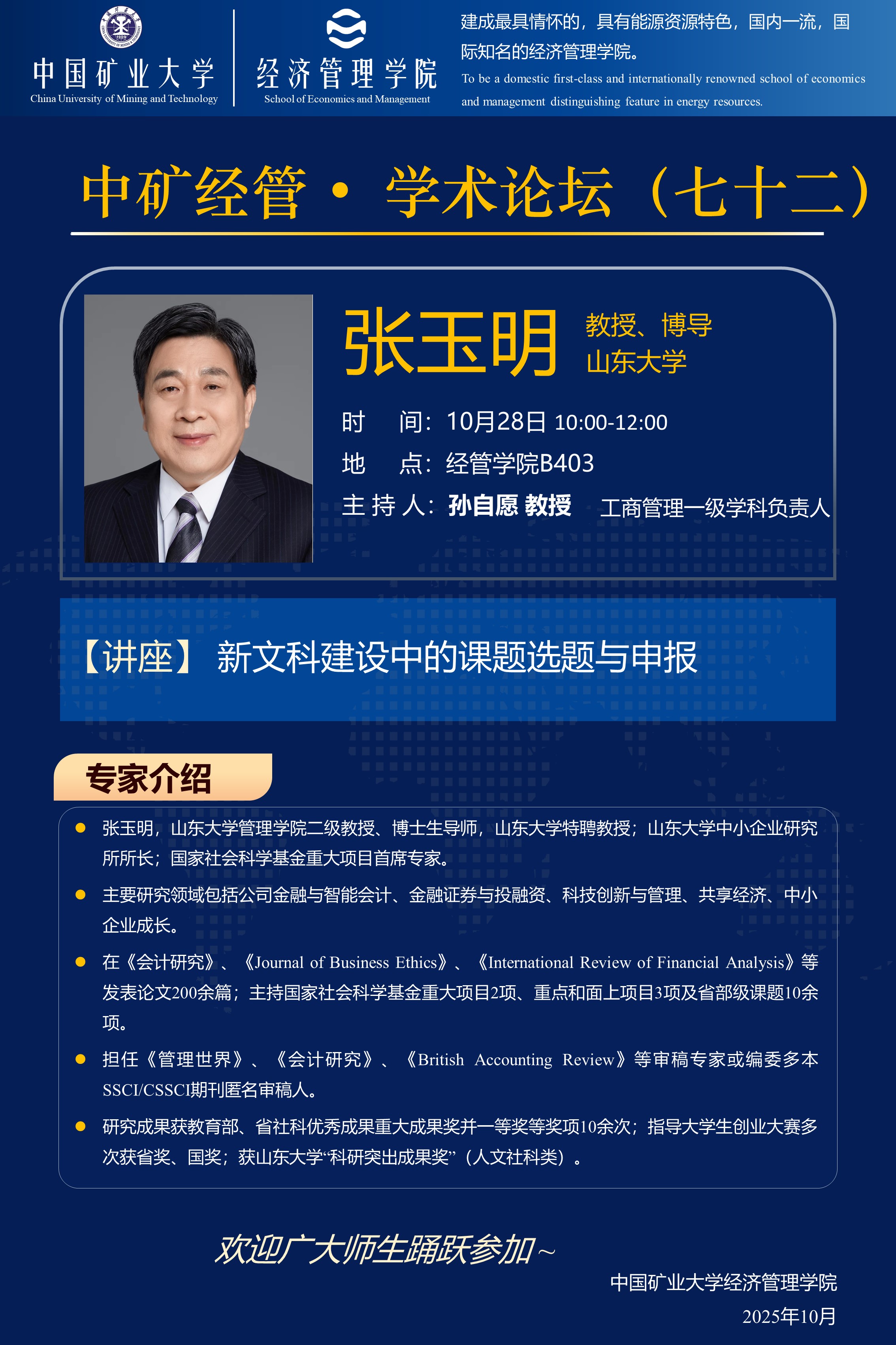 中矿经管·学术论坛(七十二)新文科建设中的课题选题与申报