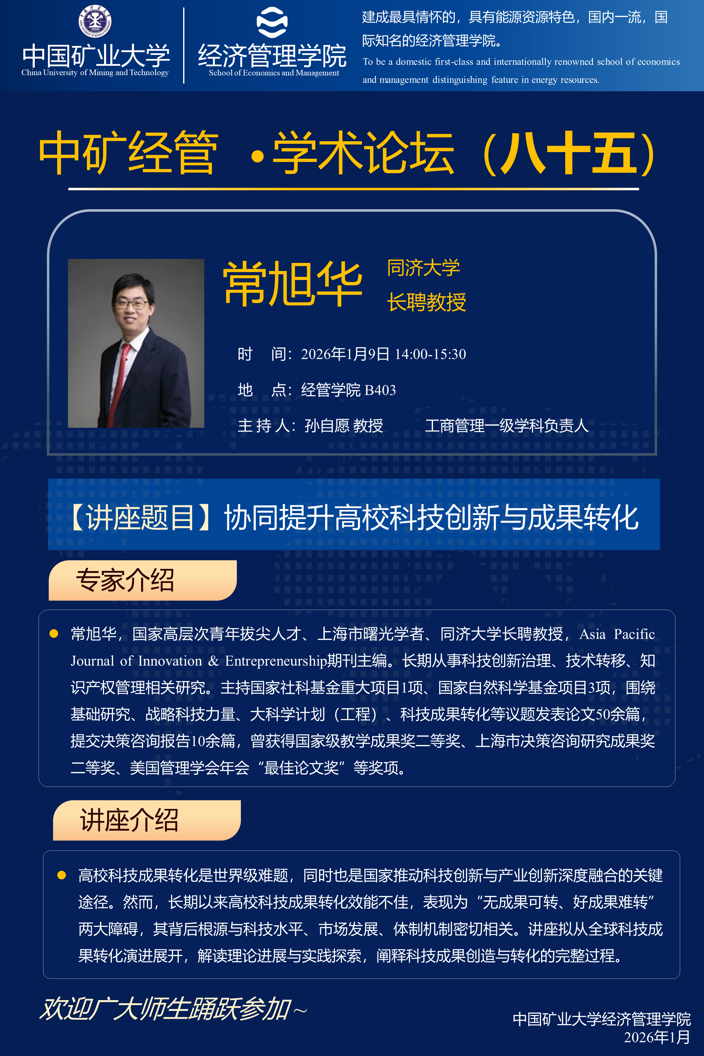 中矿经管·学术论坛(八十五)协同提升高校科技创新与成果转化