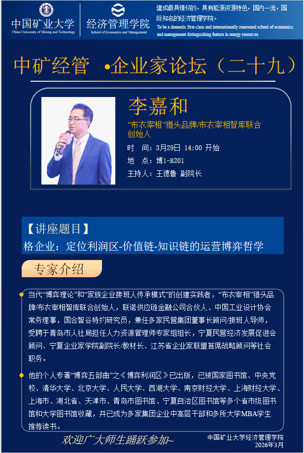 3月29日 中矿经管.企业家论坛(二十九)格企业:定位利润区-价值链-知识链的运营博弈哲学